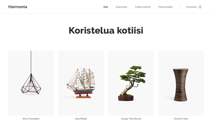Haluatko myydä itse tekemiäsi kodin koristeita? Avaa menestyksekäs verkkokauppa tämän hurmaavan sivupohjan avulla! Etusivulla oleva tuotegalleria on täydellinen paikka esitellä uniikkeja tuotteitasi ja houkutella asiakkaita tilaamaan niistä jokainen mukaviin koteihinsa. Kaiken asettaminen hoituu muutamalla klikkauksella!