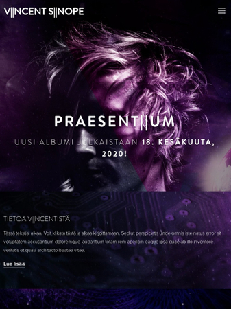 Tämä DJ:ille, tuottajille, laulajille ja muille artisteille luotu sivupohja saa kotisivusi erottumaan massasta. Älä unohda lisätä videoitasi, kuviasi ja kiertuepäivämääriäsi.