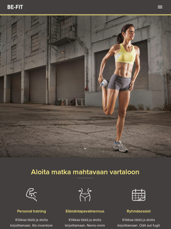 Tämä moderni sivupohja sopii valmentajille, ruokavaliovalmentajille ja muille konsulteille. Sen sivuvalikon avulla on mahdollista luoda useita sivuja ja se pitää kotisivullasi navigoinnin helppona.