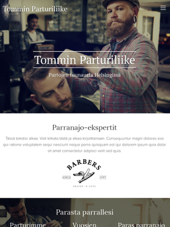 Voit luoda täydelliset kotisivut parturille, kampaajalle, tatuointiliikkeelle ja fysioterapeutille tällä sivupohjalla. Lisää vain yhteystietosi, hintasi ja kuvasi niin olet valmis.