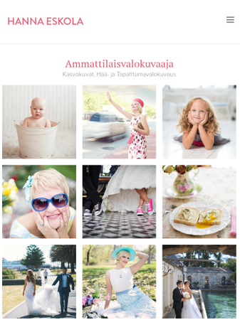 Täydellinen sivupohja hää-, potretti- ja tuotevalokuvaajille. Houkuttele uusia asiakkaita hienolla portfoliolla kotisivullasi.