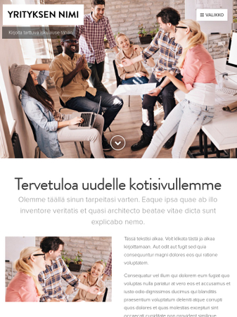 Kuvaile palvelusi, näytä merkittävimmät hyötysi, ja kerro asiakkaillesi kuinka sinut löytää. Tämä sivupohja auttaa sinua laittamaan kaiken tärkeän sisällön oikeaan paikkaan.
