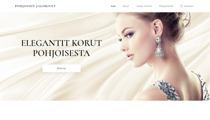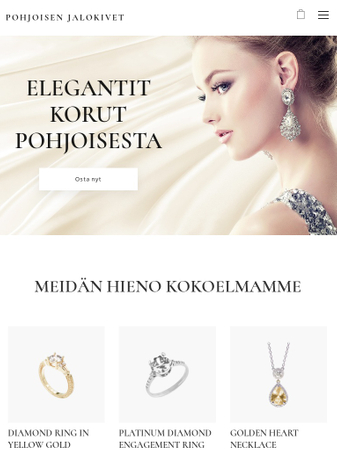 Avaa verkkokauppa ja esittele luksuskorujasi. Tämä tyylikäs sivupohja on oikea valinta, jos tahdot korujesi kiiltävän. Lisää kuvaus ja kauniit kuvat tuotteillesi ja aloita helposti asiakkaille myyminen.