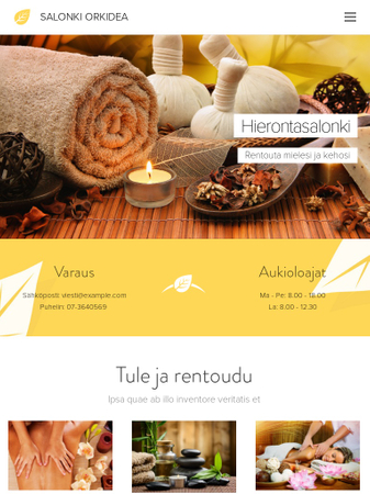 Houkuttele uusia asiakkaita tämän sivupohjan kauniilla designilla. Tunne olosi rennoksi muokatessasi sivupohjaa tarpeisiisi ja valitessasi täydelliset kuvat tietokannastamme.