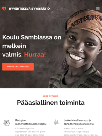 Tämä eloisa hyväntekeväisyysjärjestöjä ja voittoa tavoittelemattomia järjestöjä varten luotu sivupohja auttaa taatusti houkuttelemaan vapaaehtoisia ja lahjoituksia. Korosta onnistuneita kampanjoitasi. Kuvaile tehtäväsi. Saa ihmiset mukaan verkossa upean kotisivun avulla ja tee maailmasta parempi paikka.