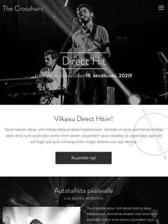 Tämä sivupohja sopii kaikille bändeille, laulajille tai musiikkiklubeille. Tiedota albumisi julkaisusta ja kiertuepäivämääristä, jotta fanisi tietävät missä sinut voi nähdä.